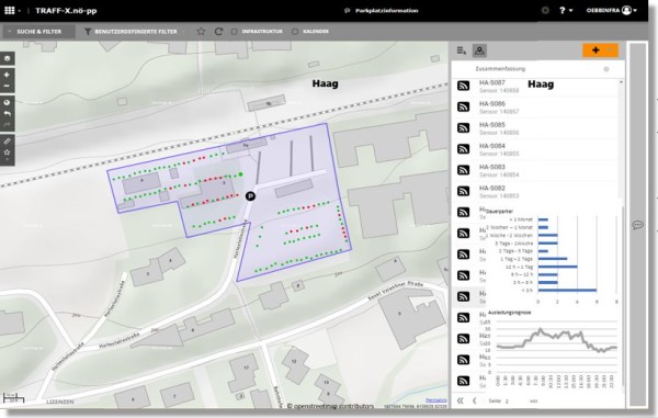 Mit der TRAFF-X solution für das Parkraummanagement haben Sie eine Komplettlösung für Parkrauminformation und die Grundlage für Ihr Parkleitsystem. Damit nutzen Sie veredelte Echtzeitdaten für fundierte planerische Entscheidungen für den ruhenden Verkehr. In Ihrer personalisierten Dashboard-Ansicht haben Sie stets den Überblick über die aktuelle Belegung von Parkraum sowie deren Veränderung.
